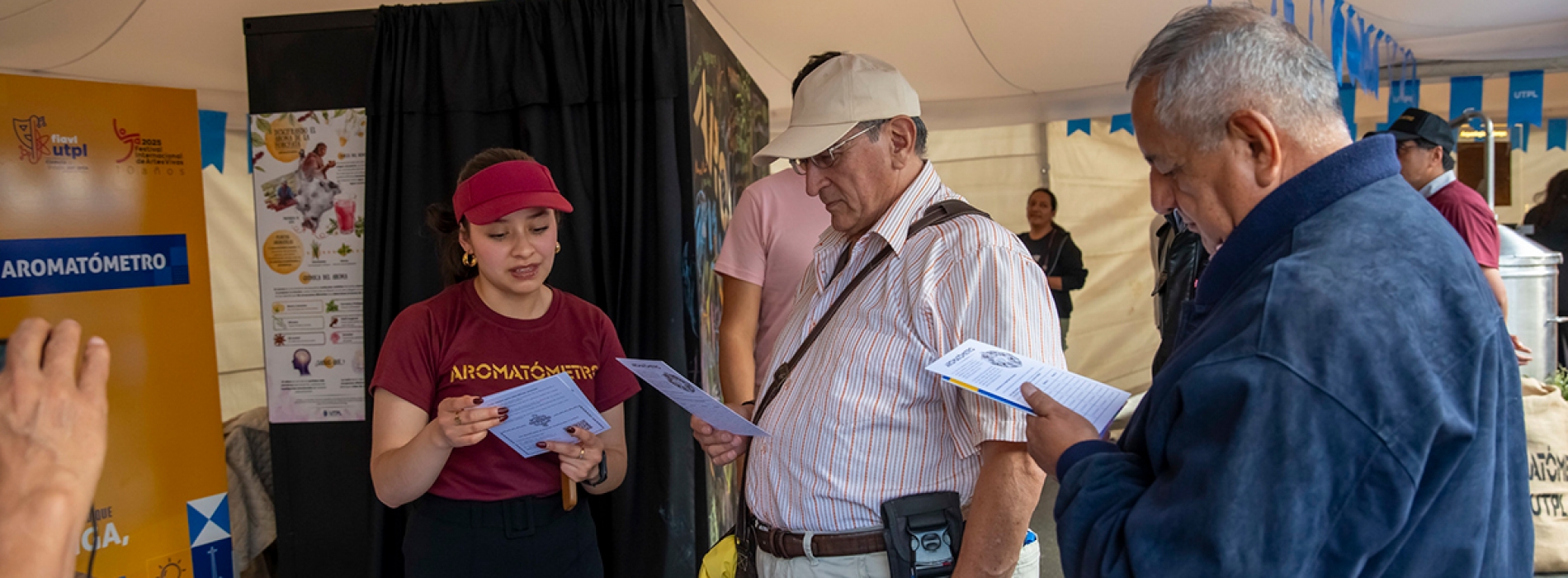 Esta idea que nació en la Universidad Técnica Particular de Loja (UTPL), está ubicado en la Plaza de la Cultura, como parte de la décima edición del Festival Internacional de Artes Vivas, el Aromatómetro sorprende desde el primer instante. Una mesa, frascos de vidrio y esencias capturadas mediante destilación dan forma a un pequeño laboratorio abierto al público. Quien se acerca no solo percibe los aromas de la tradicional horchata lojana: entra en un viaje donde la ciencia se mezcla con la tradición y la participación ciudadana.