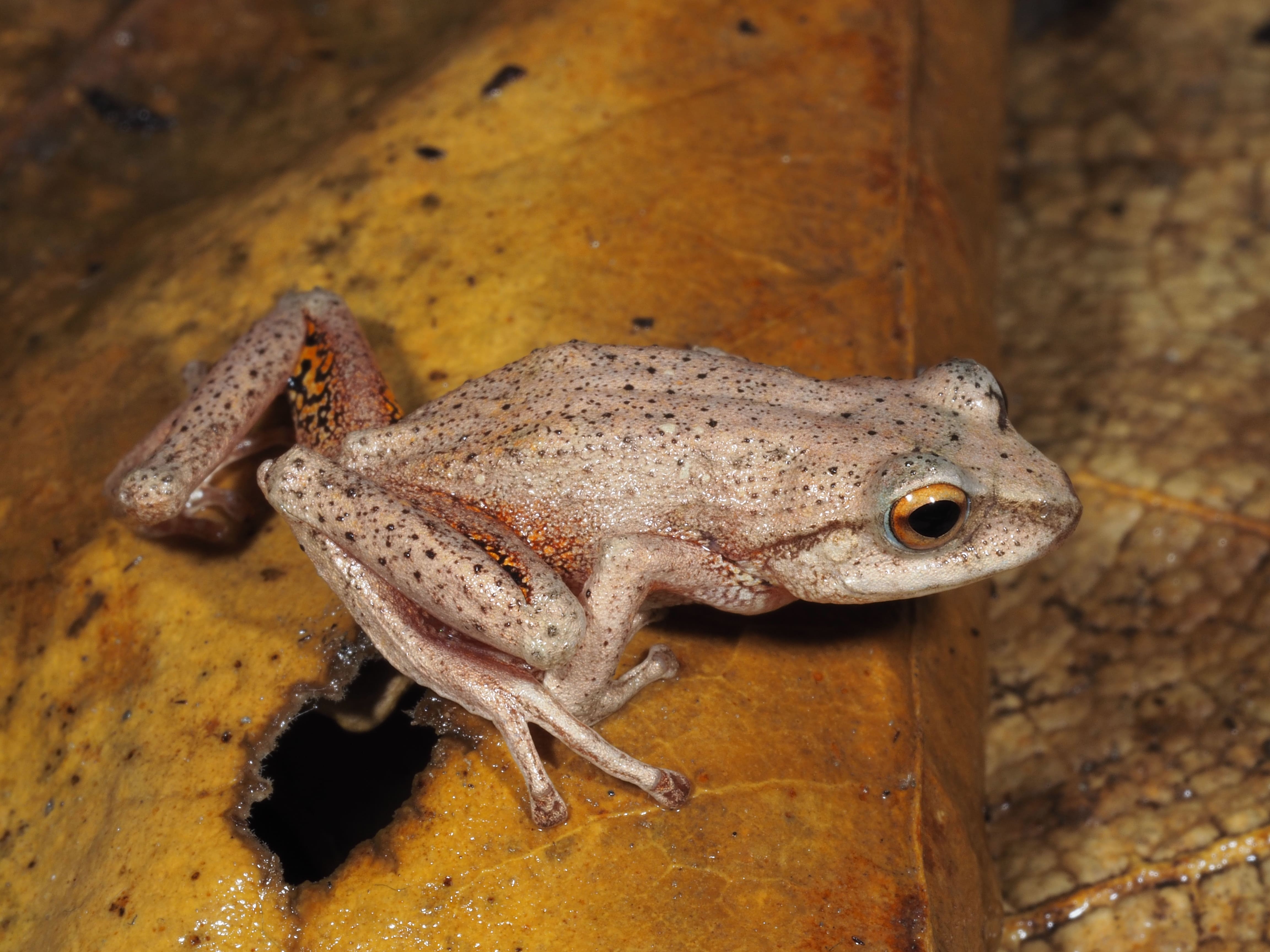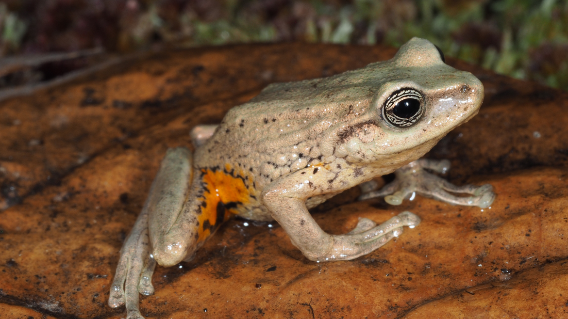 Pristimantis translucidus fue nombrada por la apariencia parcialmente translúcida de la piel en su saco vocal |